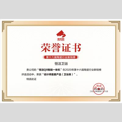 獎 項:設計師喜愛產品——恒潔Q9智能一體機