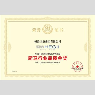 獎 項:2019家居行業影響力品牌——恒潔衛浴