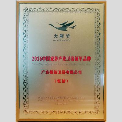 獎(jiǎng) 項(xiàng):大雁獎(jiǎng) 2016中國家居產(chǎn)業(yè)衛(wèi)浴領(lǐng)軍品牌