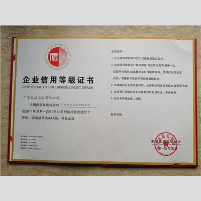 獎 項:企業(yè)信用等級證書AAA級