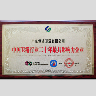 獎 項:中國衛(wèi)浴行業(yè)二十年最具影響力企業(yè)