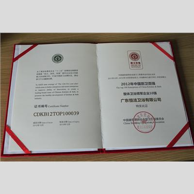 獎 項: 2012年衛(wèi)浴百強經(jīng)銷商