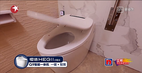 恒潔智能Q9坐便器同樣也為母子二人提供了便利,其獨有的一鍵旋鈕設計,讓操作化繁為簡,無需彎腰轉身,方便行動不便者進行操作;其接近感應功能,靠近蓋板便會自動翻開,給予貼心的使用體驗。此外坐便器搭配的U型扶手,更是便于小李在未來也能獨自上廁所。