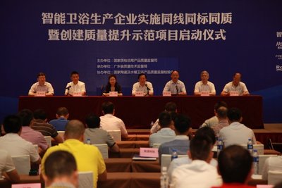 5月26日,智能衛浴生產企業實施同線同標同質暨創建質量提升示范項目在廣東佛山市智能衛浴集聚區啟動。這一活動由國家質檢總局產品質量監督司、廣東省質量技術監督局、國家陶瓷及水暖衛浴產品質量監督檢驗中心等聯合舉辦,恒潔、TAKA、樂家等30余家智能衛浴生產企業簽署質量提升承諾書,向廣大消費者做出質量承諾,共同實施“同線同標同質”。