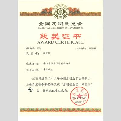 獎(jiǎng) 項(xiàng):發(fā)明創(chuàng)業(yè)獎(jiǎng)·項(xiàng)目獎(jiǎng)-金獎(jiǎng)(導(dǎo)壓便盆)