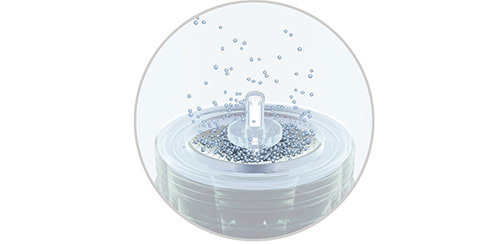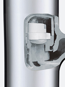 帶有Air-Mix空氣注入技術的龍頭可以再水流中注入空氣,實現水氧混合,使水流更加柔和,不飛濺,不側噴,對寶貴水資源進行高效利用。