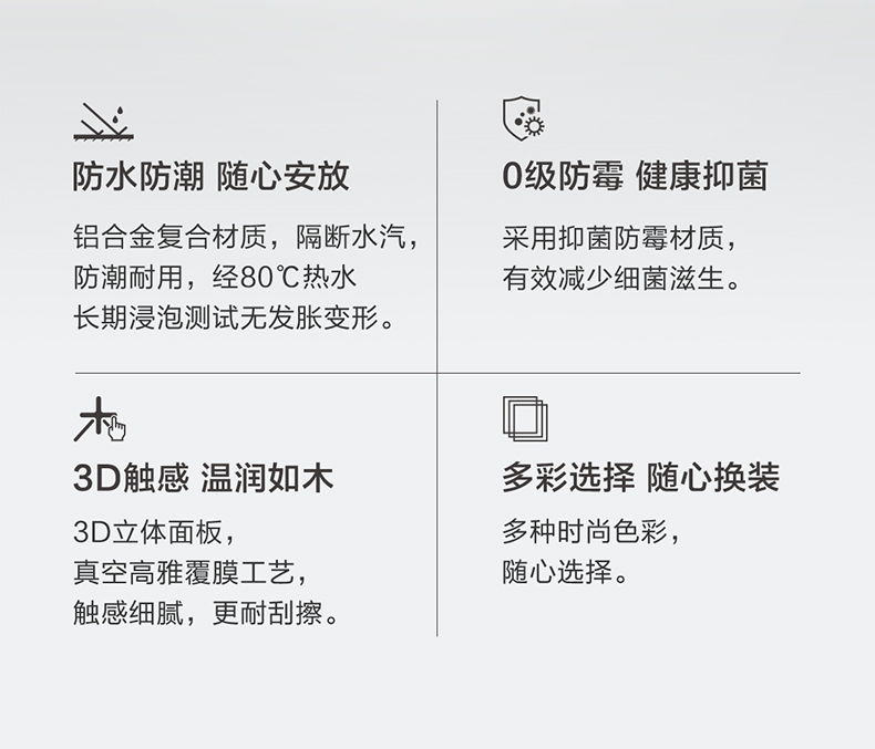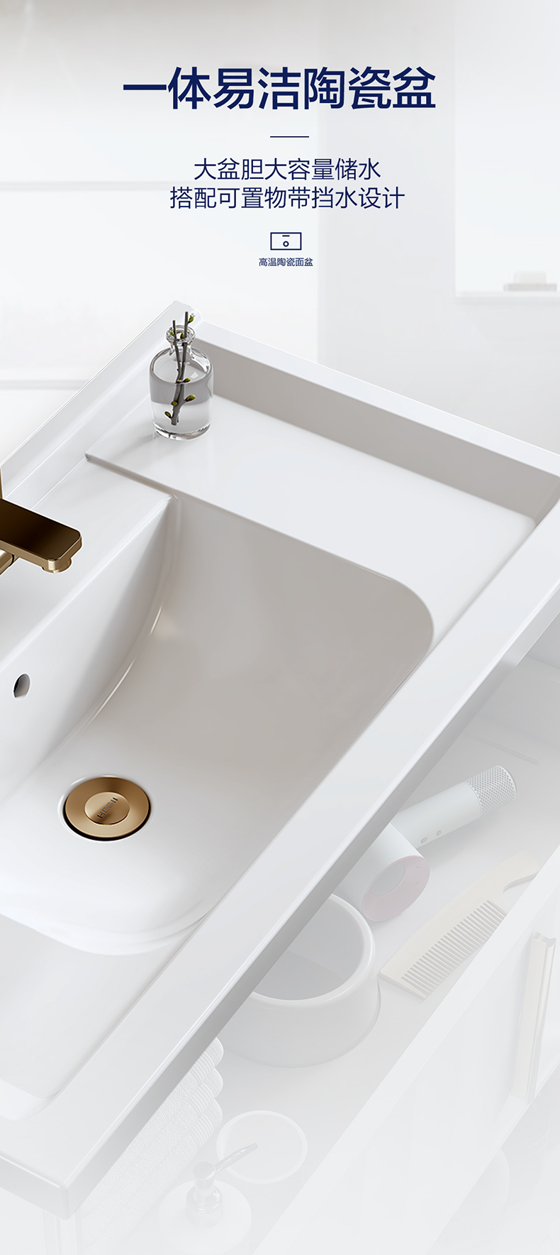 - 封閉鏡箱搭配開放式置物層,美觀防塵兼顧存取便捷