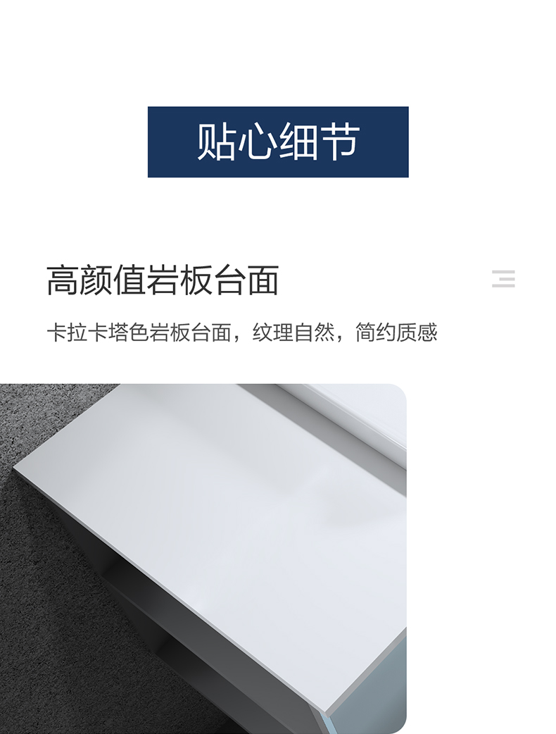 - 3、卡拉卡塔色巖板臺面,紋理自然,簡約質感,搭配微晶易潔藝術盆,耐腐蝕易打理。