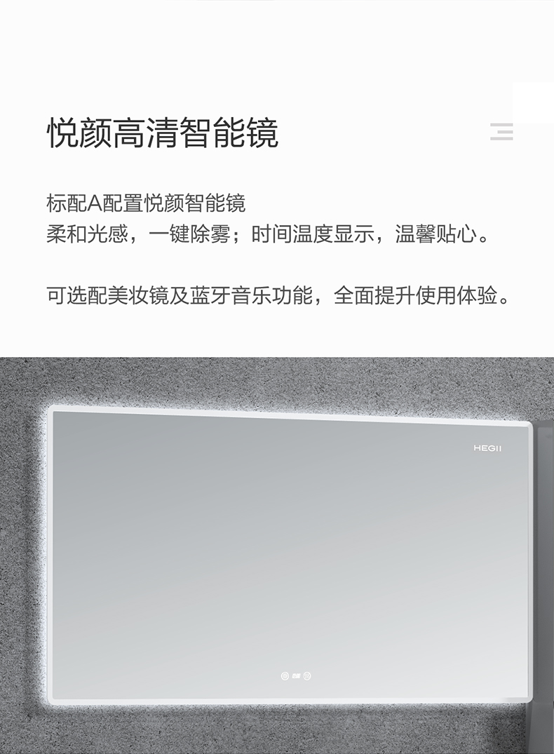 - 4、標配悅顏系列多功能智能鏡,柔和光感,一鍵除霧,時間溫度顯示,溫馨貼心;