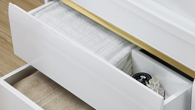 進(jìn)口優(yōu)質(zhì)五金配件恒潔浴室柜選用進(jìn)口波蘭庫(kù)博三節(jié)導(dǎo)軌,推拉靈活不易生銹、緩沖無噪音,承重力強(qiáng)可拆卸,方便清洗,導(dǎo)軌前端可對(duì)抽屜上下調(diào)節(jié),更加人性化,讓您使用更舒心;國(guó)際一線品牌格拉斯門鉸,性能穩(wěn)定卓越,創(chuàng)興阻尼三檔力度,自動(dòng)緩沖靜音閉合,為您提供一個(gè)安靜舒適的休息環(huán)境。