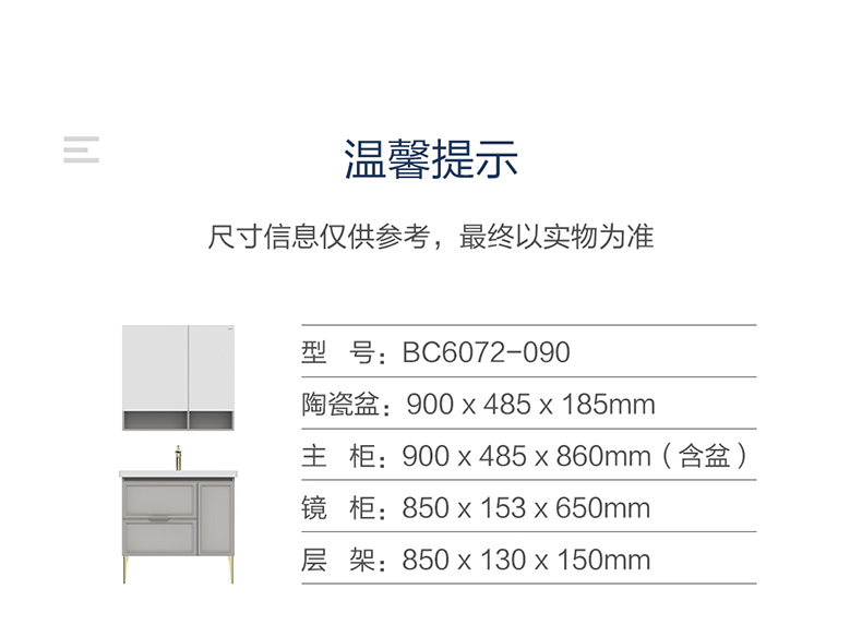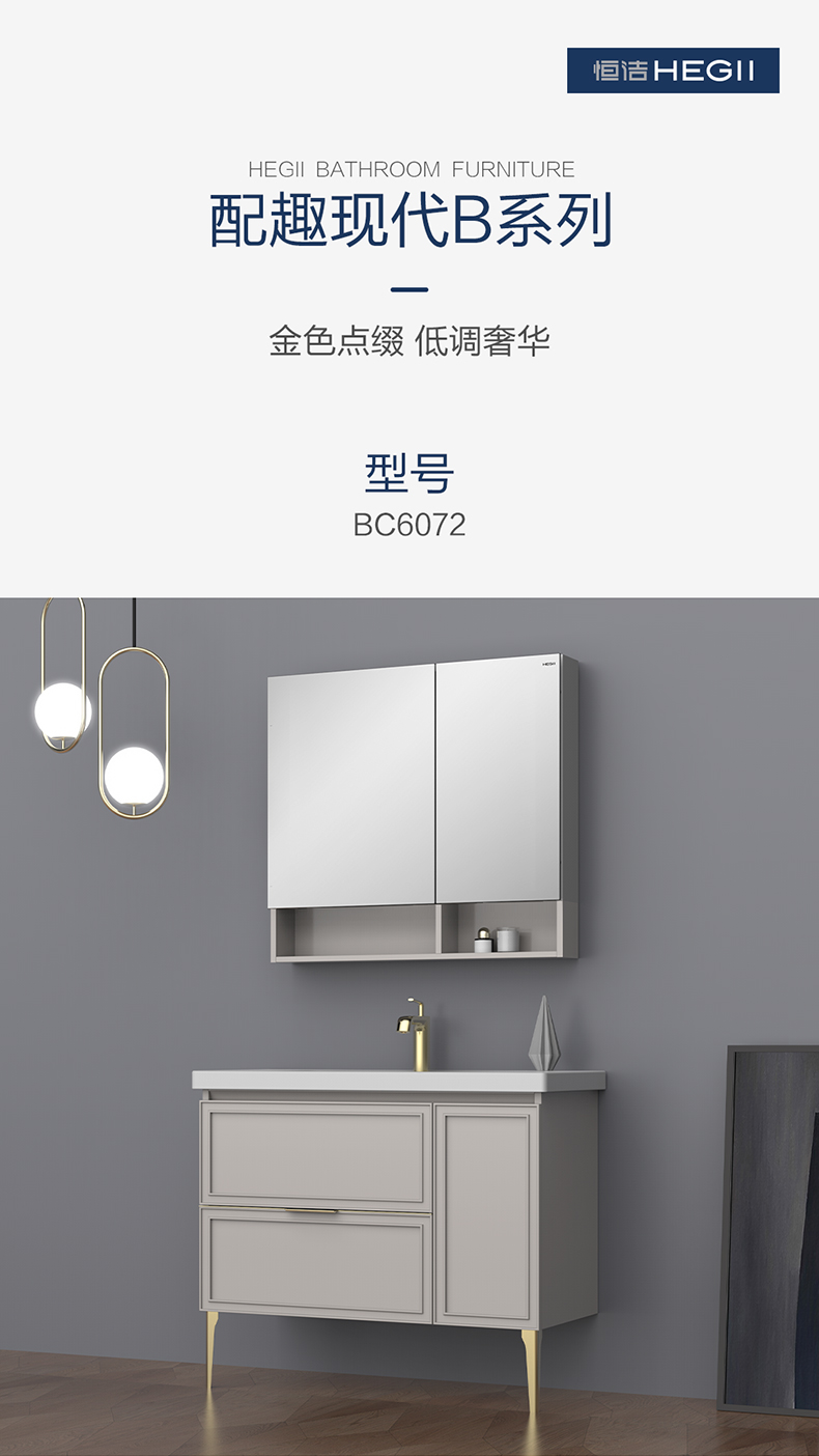 雙材質運用:鋁合金鏡柜,抑菌防霉,防潮耐用;柜身生態木,免漆環保,面板使用鋁型材立體邊框;