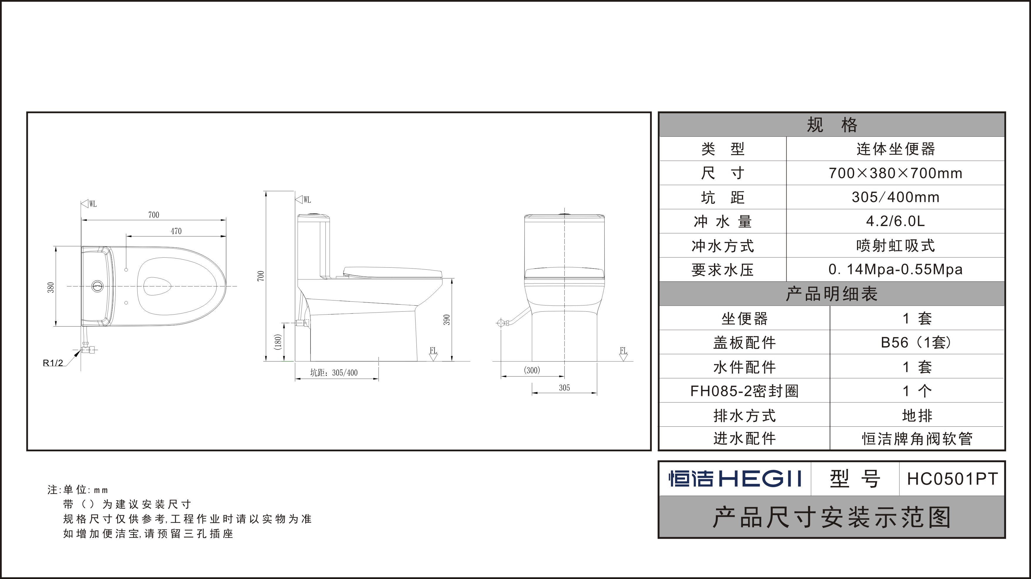 HC0501PT 節水坐便器