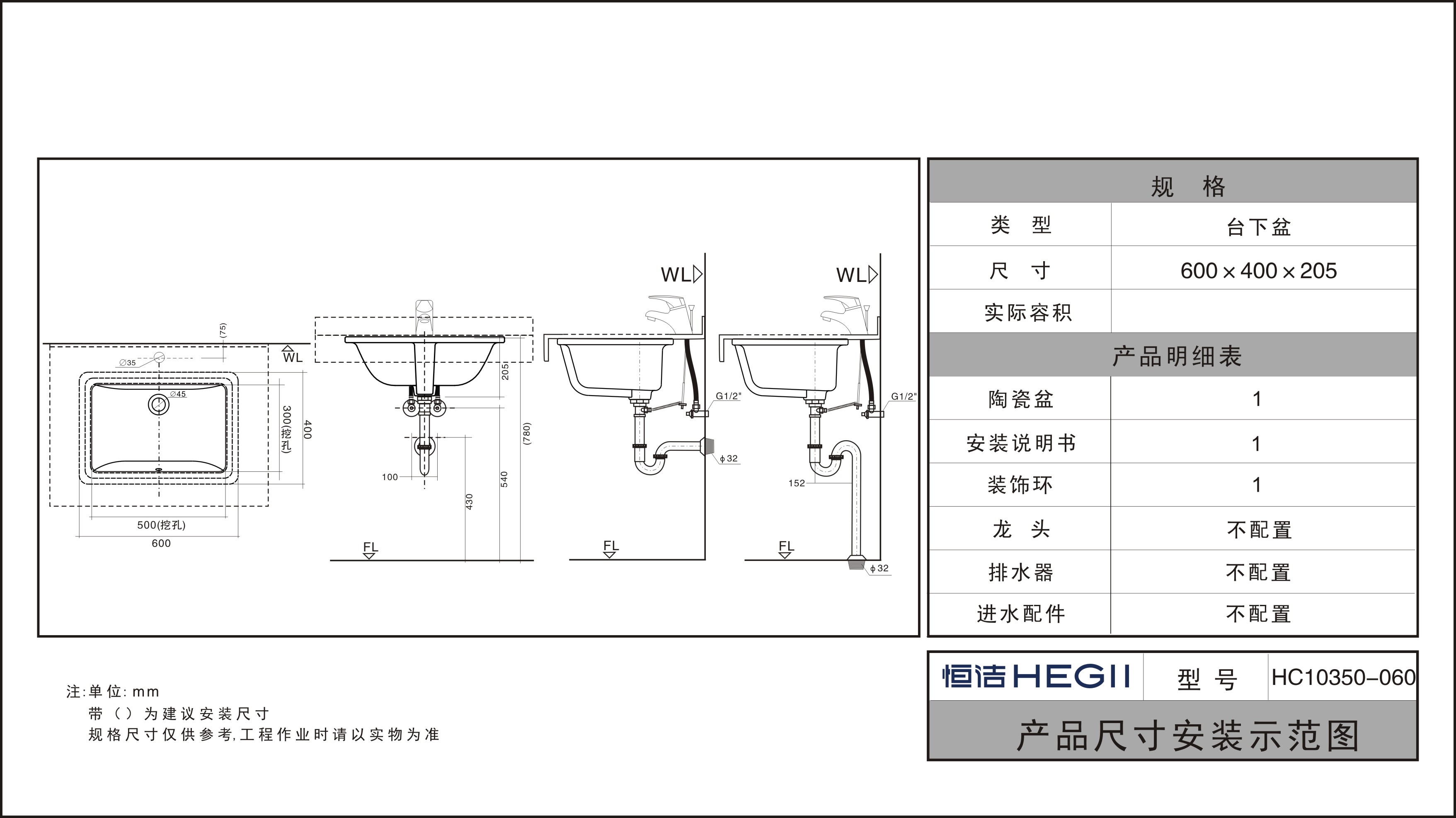 HC10350-054/060方形臺下盆